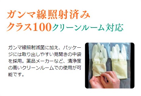 ガンマ線照射済み クラス100クリーンルーム 強力グリップラテックス手袋